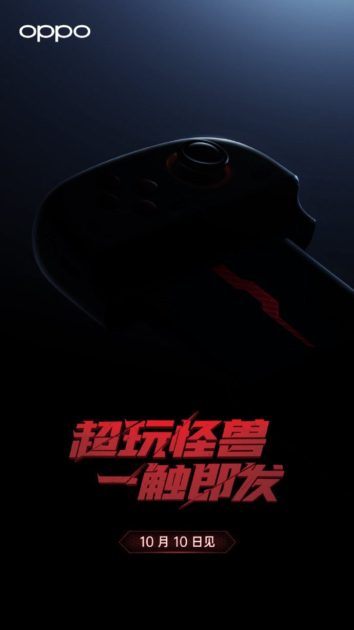 OPPO将于10月10日举办OPPO Reno Ace超玩大会,届时OPPO Reno Ace将正式亮相。除了手机之外,OPPO智美心品还曝光了一款手机游戏手柄,也